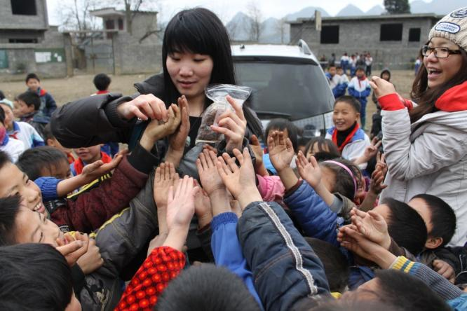 “我始終記得第一次去織金的情景。當(dāng)時(shí),我們從貴陽(yáng)出發(fā),走了5個(gè)小時(shí)的盤(pán)山公路,2個(gè)小時(shí)坑坑洼洼的盤(pán)山小路才到。難以忘記的是破敗的教室里孩子們黝黑冰冷的小手,鼻子上掛著的兩條‘小蟲(chóng)’,透著冬日寒風(fēng)的衣服上的破洞。他們半倚在簡(jiǎn)陋的桌椅邊直打哆嗦,卻依然因?yàn)槲覀兊牡絹?lái)綻放著暖陽(yáng)般的笑臉。”原廣發(fā)銀行深圳分行副行長(zhǎng)駱向東回憶起考察邊遠(yuǎn)村小時(shí)的情景,至今仍心疼不已。