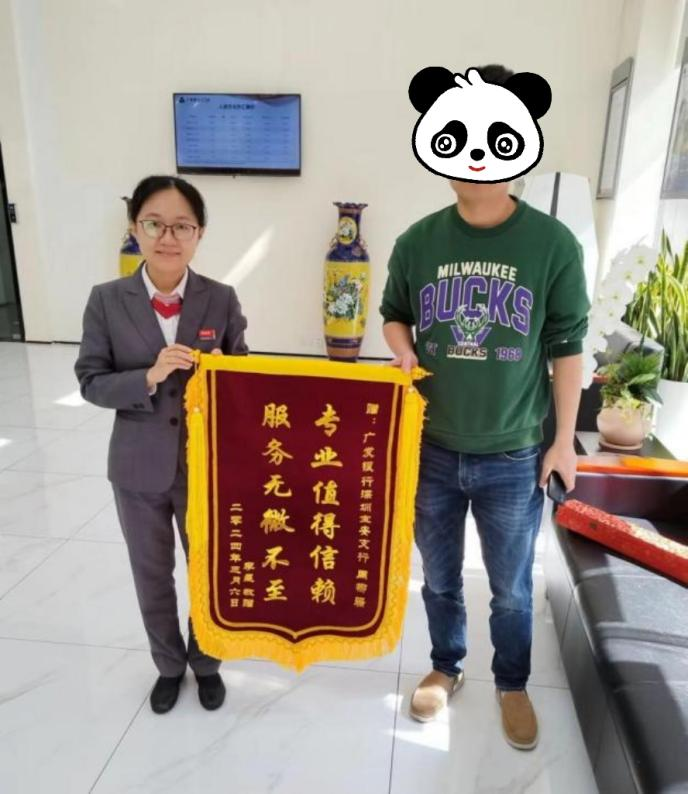 深圳新聞網(wǎng)2024年5月11日訊(記者 朱琳)“真的太感謝廣發(fā)銀行了!要不是廣發(fā)銀行專業(yè)高效的服務(wù),我這筆貨款都不知何時(shí)能付出去!”小微企業(yè)主李先生握著廣發(fā)銀行深圳寶安支行服務(wù)經(jīng)理周柳珊的手激動(dòng)地說(shuō),隨后將一面印有“服務(wù)無(wú)微不至,專業(yè)值得信賴”的錦旗送到她的手中,向該行熱情、高效、暖心的服務(wù)表示感謝。錦旗上十二個(gè)金燦燦的大字寄托了客戶對(duì)廣發(fā)銀行沉甸甸的信任和堅(jiān)定不移的支持。