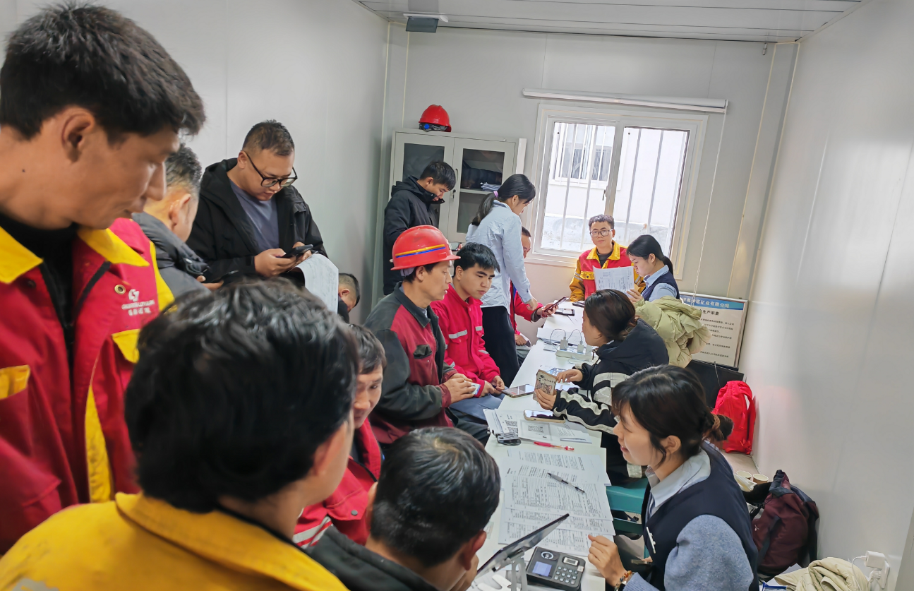 面對(duì)困難,陳嘉濤深知客戶需求無小事。他果斷決定帶隊(duì)前往現(xiàn)場(chǎng),為當(dāng)?shù)貑T工集中辦理銀行卡開卡及工資代發(fā)相關(guān)手續(xù)。從繁華的深圳到偏遠(yuǎn)的高原,路途遙遠(yuǎn)、舟車勞頓,加上高原反應(yīng)帶來的身體不適,讓整個(gè)團(tuán)隊(duì)面臨嚴(yán)峻考驗(yàn)。但他們沒有絲毫退縮,抵達(dá)后便迅速搭建臨時(shí)服務(wù)點(diǎn),投入到緊張的工作中。
