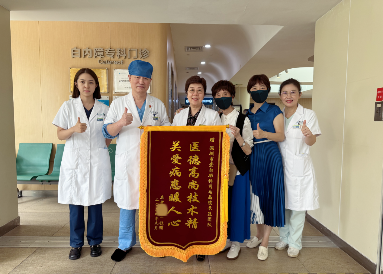 完成手術(shù)的劉奶奶心情無(wú)比輕松,坐在輪椅上被推出手術(shù)室時(shí),她向醫(yī)護(hù)人員豎起了大拇指。兩天后,劉奶奶又順利進(jìn)行了另一只眼的手術(shù)。通過(guò)飛秒激光輔助白內(nèi)障手術(shù),一次性解決了她的白內(nèi)障、遠(yuǎn)視、散光及老視等多種眼病困擾。術(shù)后,她為醫(yī)護(hù)人員送來(lái)錦旗,激動(dòng)地抱著司馬晶教授道謝:“感謝您治好了我的眼睛,我現(xiàn)在看遠(yuǎn)看近都很清楚,真后悔沒(méi)有早點(diǎn)做這個(gè)手術(shù)!”