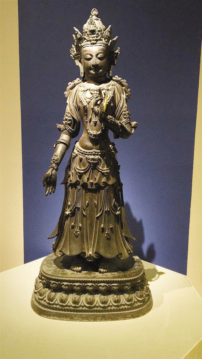 ▲明鎏金銅蓮花手菩薩像。