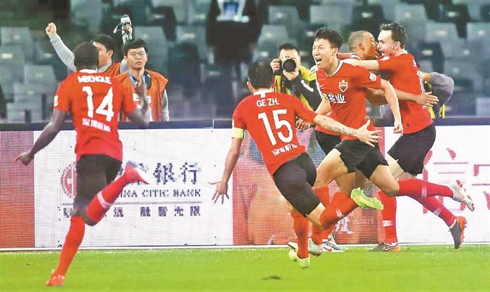 絕殺天海,深足球員欣喜若狂。 深圳特區(qū)報(bào)記者 鄭東升 攝