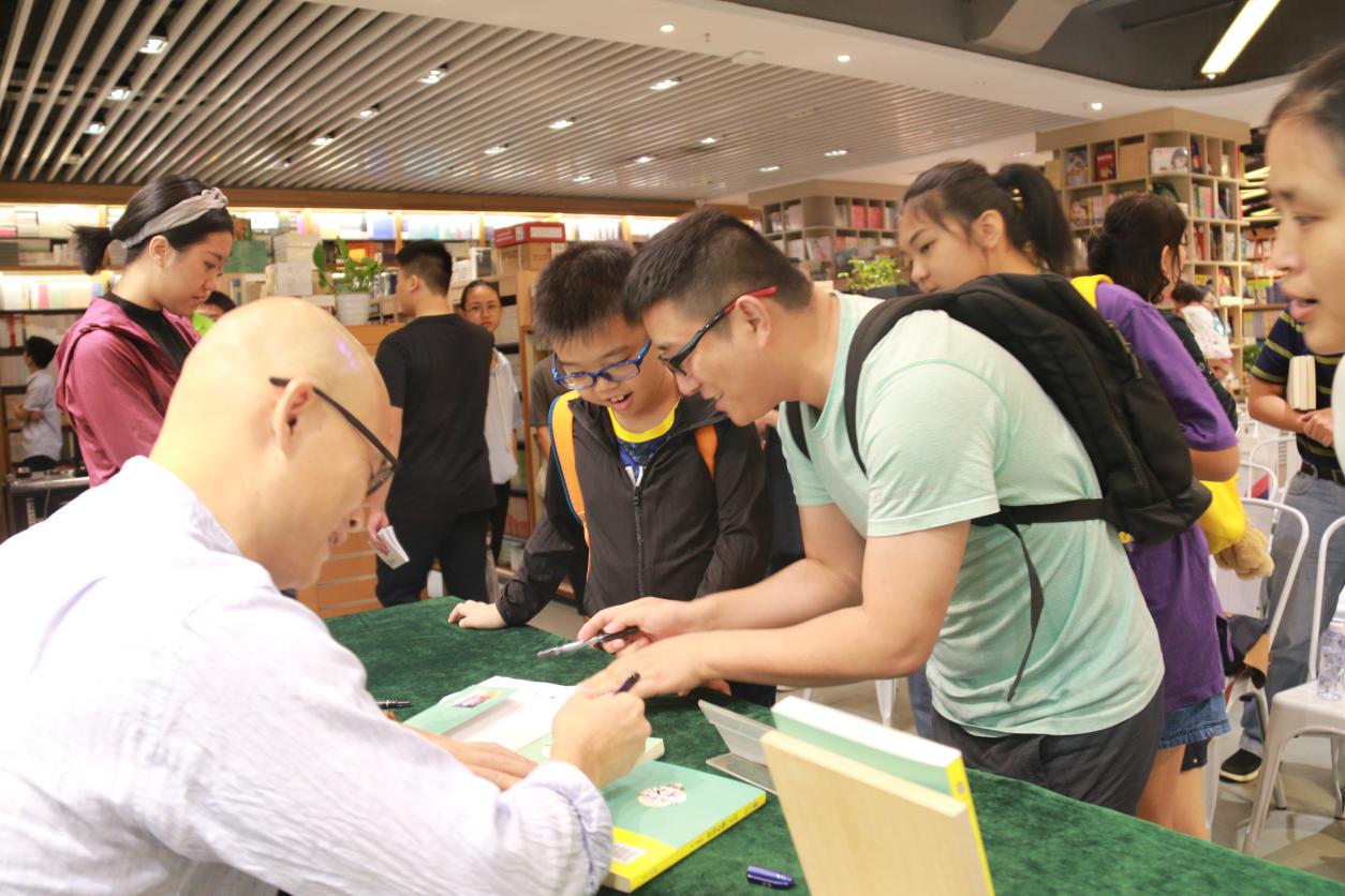 活動最后,作者劉建彪先生繼續(xù)與讀者展開交流,為購書讀者簽名。來自東莞的江先生坦言,周末帶著小孩無意進入羅湖書城,即被活動內(nèi)容吸引,在1個小時的活動中,感受到了漢字的魅力,感受到了深圳濃郁的文化氛圍?!耙院髱Ш⒆佣鄟砩钲跁牵磿犞v座”,他說。