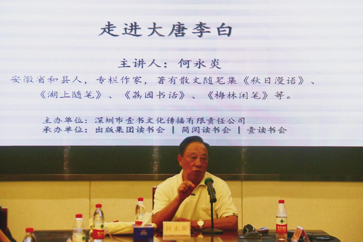 深圳新聞網(wǎng)訊 2019年8月31日下午,“福田區(qū)第三屆文學(xué)精品有聲閱讀藝術(shù)節(jié)”之“唐詩(shī)三百首”專場(chǎng)活動(dòng)“走進(jìn)大唐李白”公益文化講座暨最美唐詩(shī)朗誦會(huì)在簡(jiǎn)閱書吧香蜜湖店三樓多功能室成功舉辦?;顒?dòng)由深圳市壹書文化傳播有限責(zé)任公司、深圳市書城文化投資控股有限公司主辦,出版集團(tuán)讀書會(huì)、簡(jiǎn)閱讀書會(huì)和壹讀書會(huì)承辦,本次活動(dòng)吸引了眾多對(duì)中國(guó)傳統(tǒng)文化富有興趣的詩(shī)歌愛(ài)好者,活動(dòng)開始前已座無(wú)虛席,靜候這場(chǎng)關(guān)于李白、關(guān)于詩(shī)歌的文化盛宴。