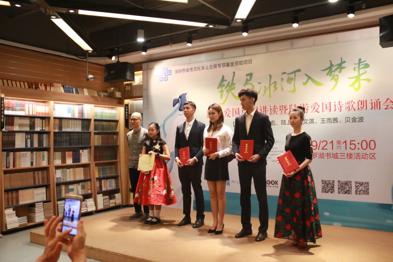深圳新聞網(wǎng)訊 9月21日下午,由深圳市宣傳文化事業(yè)發(fā)展專項基金資助的“新時代中華優(yōu)秀傳統(tǒng)文化進社區(qū)”項目之“鐵馬冰河入夢來”陸游愛國詩詞公益講座暨陸游愛國詩詞朗誦會在羅湖書城三樓活動區(qū)成功舉辦。本次活動由深圳市壹書文化傳播有限責(zé)任公司、深圳書城羅湖城共同主辦,壹書閱讀推廣人、愛詩家創(chuàng)始人劉建彪先生擔(dān)任主講嘉賓?;顒由形撮_始,現(xiàn)場已座無虛席,觀眾們對講座充滿了期待,更有小朋友們朗誦起了陸游的名句。