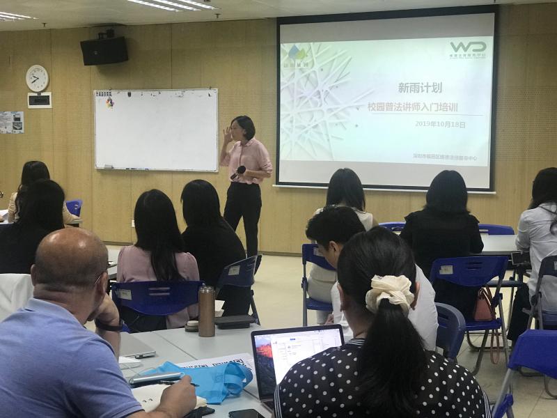 據(jù)介紹,在2019年秋季學(xué)期,新雨計(jì)劃項(xiàng)目共收到福田區(qū)20個(gè)學(xué)校,181個(gè)班,362節(jié)課的普法課程授課需求,自10月14日開始,新雨計(jì)劃項(xiàng)目志愿律師已經(jīng)陸續(xù)開始進(jìn)入校園授課。為滿足更多學(xué)校的普法課程需求,同時(shí)也為更多志愿律師提供參與到新雨計(jì)劃項(xiàng)目活動(dòng)中的機(jī)會(huì),維德中心于10月18日、19日分別舉辦了一場(chǎng)志愿律師崗前培訓(xùn)活動(dòng),參與過培訓(xùn)的律師后續(xù)需要提交一份試課視頻供新雨計(jì)劃資深授課律師進(jìn)行評(píng)估,試課視頻經(jīng)評(píng)估合格的志愿律師將能夠認(rèn)領(lǐng)班級(jí)參與校園授課活動(dòng)。