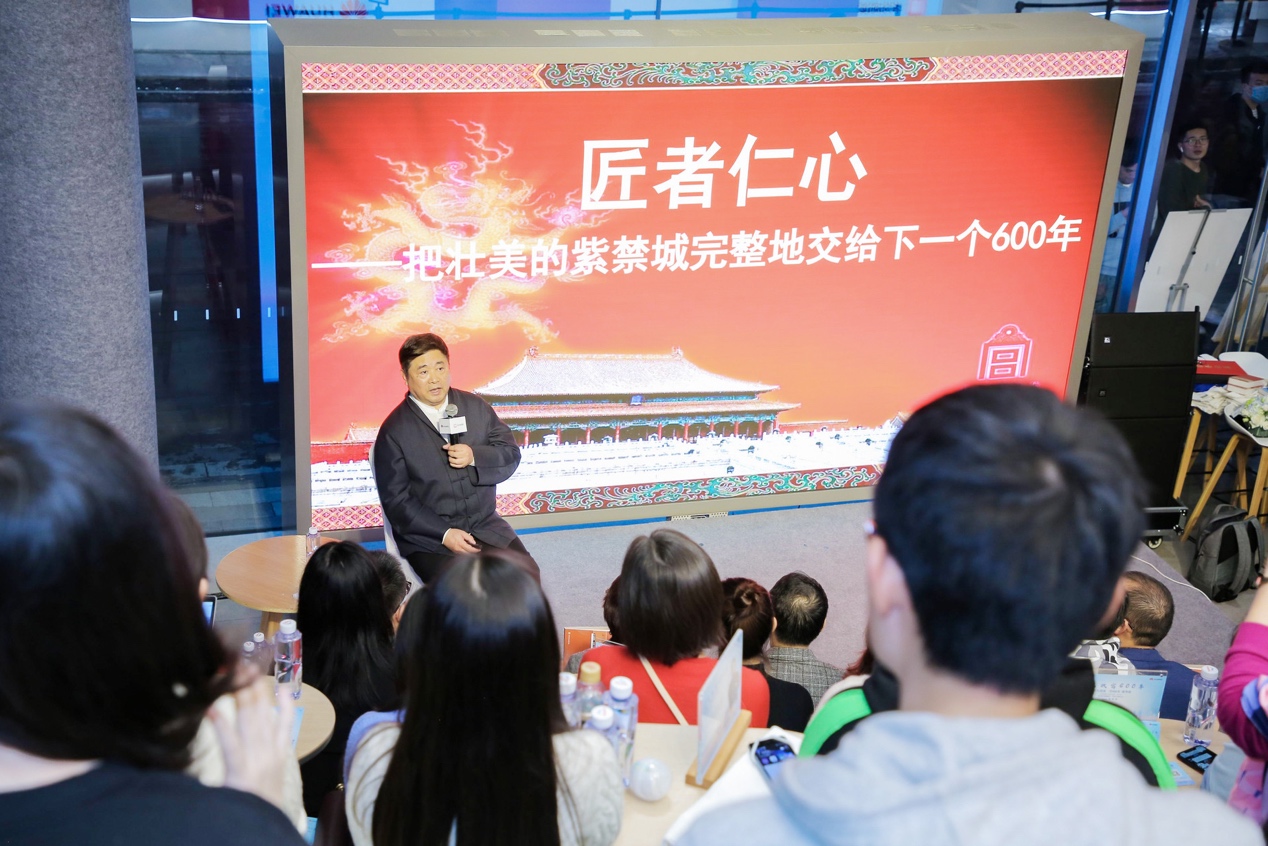 分享開始前,單霽翔談到:很多人都說故宮成“網(wǎng)紅”了,我成“網(wǎng)紅”了。面對這些,我認為故宮沒有刻意追求“網(wǎng)紅”效應,我們是被‘網(wǎng)紅’的?!弊约阂仓皇枪蕦m的“看門人”而已,并不是什么“網(wǎng)紅”。幽默風趣的內(nèi)容引來現(xiàn)場觀眾陣陣掌聲。