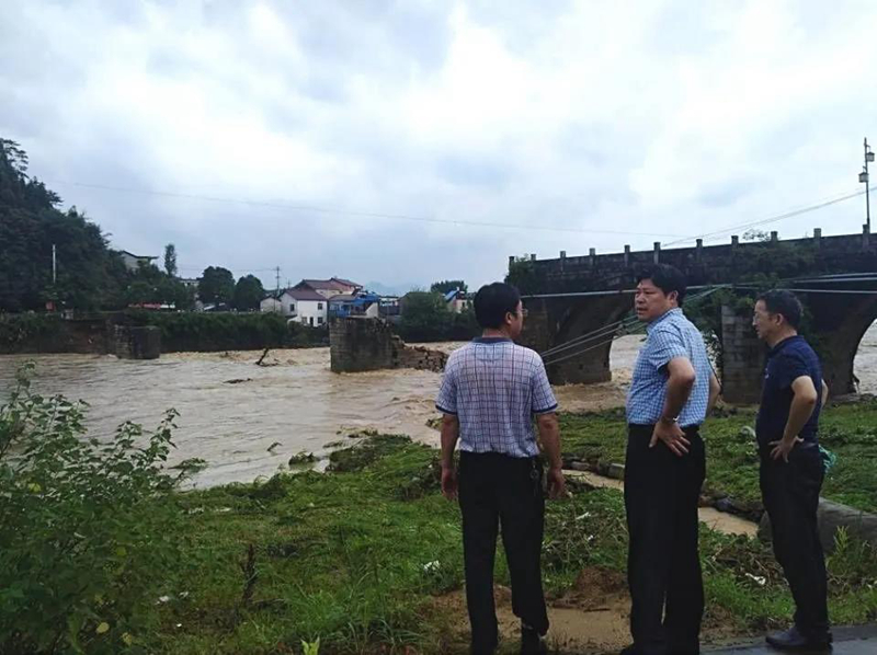 安徽省文物工作人員現場查看黃山鎮(zhèn)海橋受損情況(來源:國家文物局)