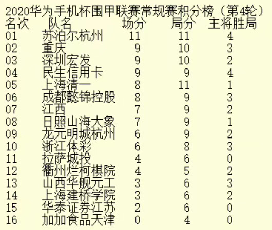 見(jiàn)圳客戶端?深圳新聞網(wǎng)2020年8月27日訊(記者周錦春)今日,2020“華為手機(jī)杯”中國(guó)圍棋甲級(jí)聯(lián)賽第四輪繼續(xù)在浙江長(zhǎng)興進(jìn)行,深圳宏發(fā)隊(duì)以3比1大勝上屆亞軍龍?jiān)鞒呛贾蓐?duì),目前積9分,在積分榜上與重慶隊(duì)、民生信用卡隊(duì)并列第二名。本輪亮點(diǎn):戎毅威風(fēng)四連勝!時(shí)越持續(xù)低迷。