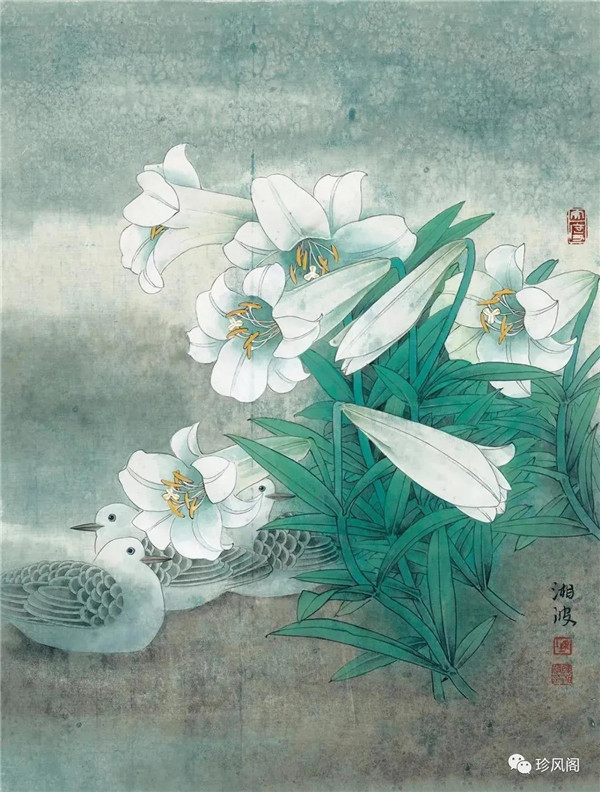 總的來(lái)看,陳湘波先生的工筆花鳥畫,繼承了嶺南畫派重生活、重色彩、重創(chuàng)造的優(yōu)秀傳統(tǒng),創(chuàng)作出來(lái)的是一系列意境深邃幽遠(yuǎn)的作品。他在繼承傳統(tǒng)的基礎(chǔ)上,借鑒現(xiàn)代設(shè)計(jì)、西方繪畫的元素以及其他畫種的繪畫技法,形成了符合現(xiàn)代人審美的具有個(gè)人風(fēng)格的當(dāng)代工筆花鳥作品。