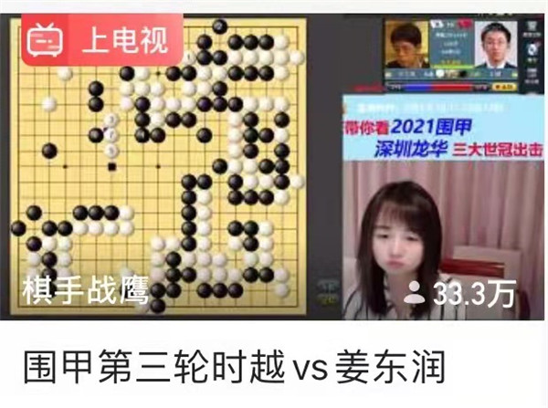 今日虎牙直播對深圳龍華隊(duì)的現(xiàn)場講解點(diǎn)評沖上了33.3萬人次的大關(guān),人氣可謂一路上升!職業(yè)女棋手戰(zhàn)鷹解說生動有趣,棋迷們聽得也過癮。再有“龍哥”“申一冠”的迷粉,直播室熱鬧非凡!戰(zhàn)鷹是圍棋知名主播,作為深圳龍華隊(duì)網(wǎng)上直播合作人,為龍華隊(duì)的宣傳還真是帶來不小的效應(yīng)!明天繼續(xù)吧。