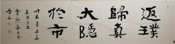 2011年隱居廣東中山,處江湖之遠亦不忘躬耕,以書立德、以筆潤身,專注于佛法經(jīng)文、家學(xué)文化和百家家訓(xùn)書法的研究,并創(chuàng)辦五福書院,通過教授古琴、書法、四書誦讀等形式開班授課,以中國傳統(tǒng)文化踐行家學(xué)文化。歸隱而不忘憂國,金熙長先生自隱居以來,在珠海、中山、深圳、上海等地舉辦了多次《以書立德、以筆潤身——常福居士百家家訓(xùn)、百種心經(jīng)書法作品全國巡展》;2020年8月,金熙長先生的《方正字跡-金熙長標題體》在方正字庫正式上線。