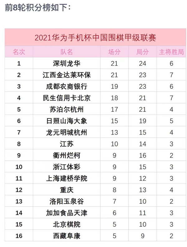 2021華為手機杯中國圍棋甲級聯(lián)賽常規(guī)賽第八輪深圳龍華隊4:0 洛陽玉泉谷隊