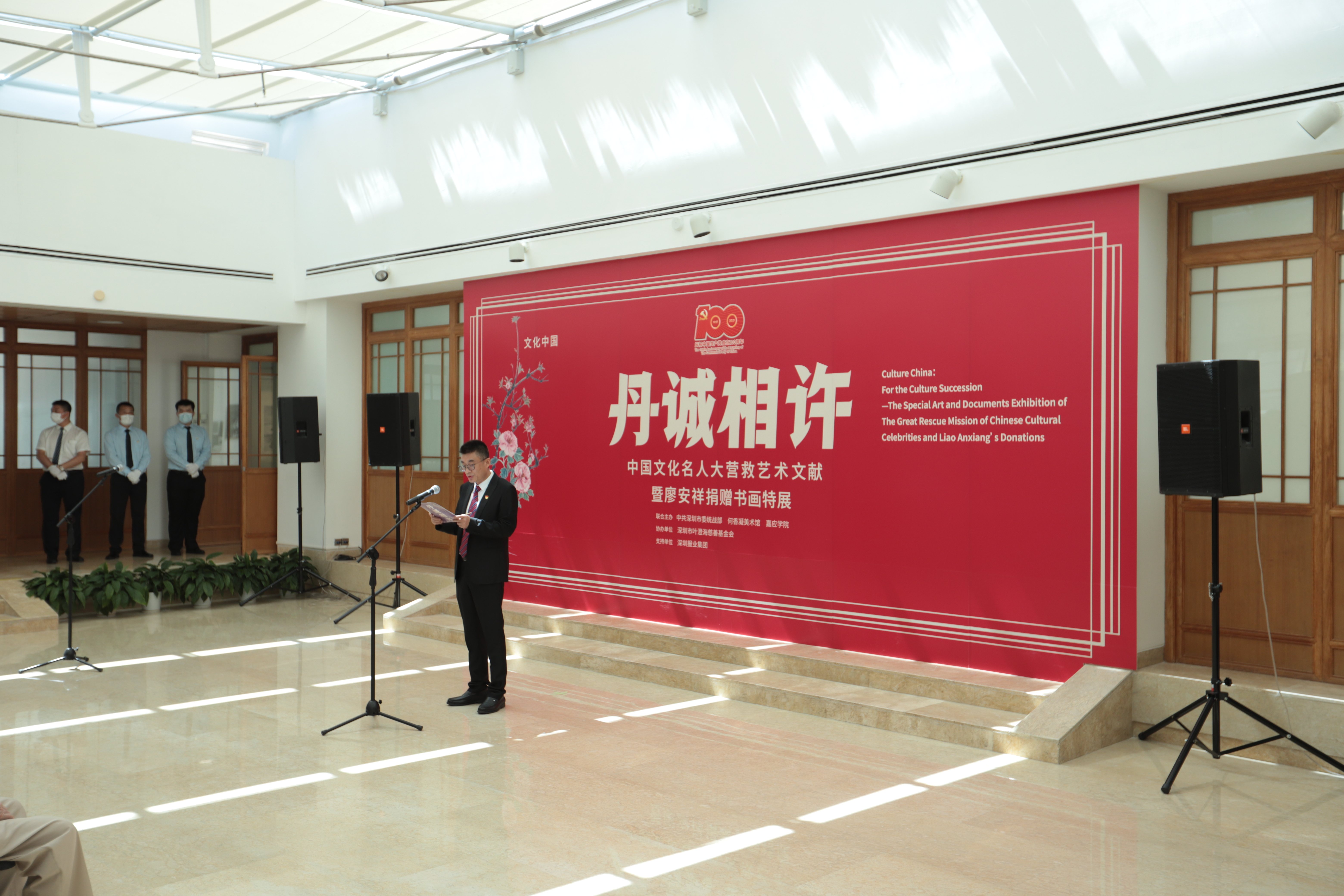 蔡顯良館長(zhǎng)向出席開幕活動(dòng)的嘉賓表示感謝,他介紹,粵港“秘密大營(yíng)救”被譽(yù)為“抗戰(zhàn)以來最偉大的搶救工作”,它延續(xù)了中國(guó)文化的血脈,更彰顯了黨的力量、突顯了黨對(duì)文化事業(yè)的重視以及對(duì)文化人士的愛護(hù),對(duì)推動(dòng)全民族抗戰(zhàn)以及新中國(guó)的文化建設(shè)起到了重要作用。在中國(guó)共產(chǎn)黨百年華誕之際,為緬懷先輩的光輝事跡,傳承和弘揚(yáng)統(tǒng)戰(zhàn)精神,美術(shù)館與深圳市委統(tǒng)戰(zhàn)部、嘉應(yīng)學(xué)院聯(lián)合推出此次展覽,為觀眾帶來一場(chǎng)愛國(guó)、愛黨的文化之旅。