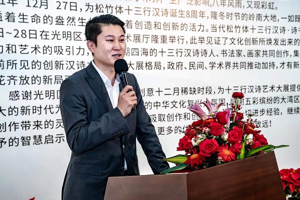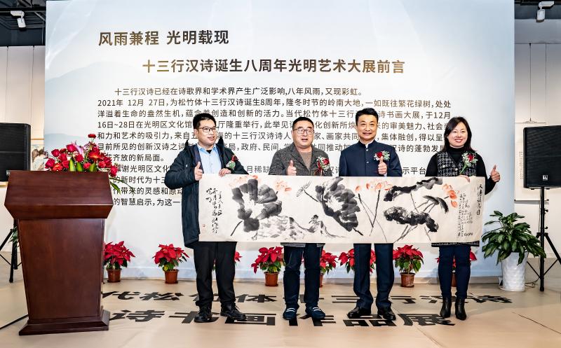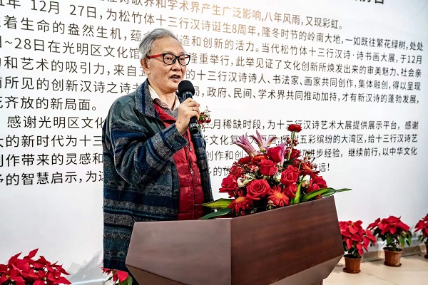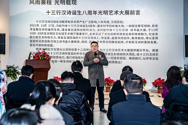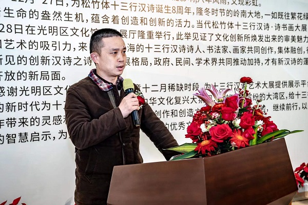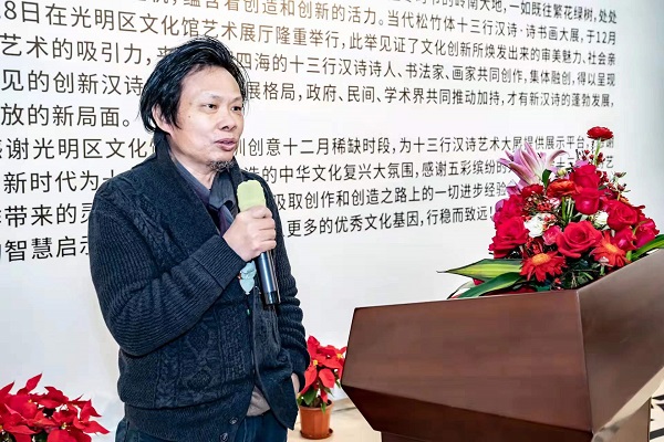 讀特客戶端·深圳新聞網(wǎng)2021年12月29日訊(記者 田志強)近日,國家社科基金項目“當(dāng)代漢詩創(chuàng)新詩體研究”階段性成果展——十三行漢詩書畫作品展,于光明區(qū)文化館成功舉辦。本次展覽集中展示本項目重要研究成果、全國各地新漢詩詩人的原創(chuàng)十三行漢詩之書畫作品等。十三行漢詩創(chuàng)立八年以來,得到了海內(nèi)外詩人的廣泛關(guān)注,在國家社科基金研究團隊精研闡釋的基礎(chǔ)上,得到了學(xué)術(shù)界的肯定。