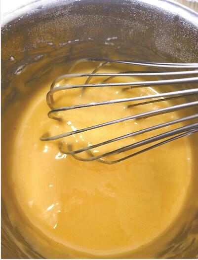 首先要將牛奶和油一起打均勻,直至打到看不到油星沫為止,而且不要用轉(zhuǎn)圈圈的方式打,因?yàn)檗D(zhuǎn)圈圈打,就會(huì)出現(xiàn)泡泡,這會(huì)影響到蛋糕的成品。