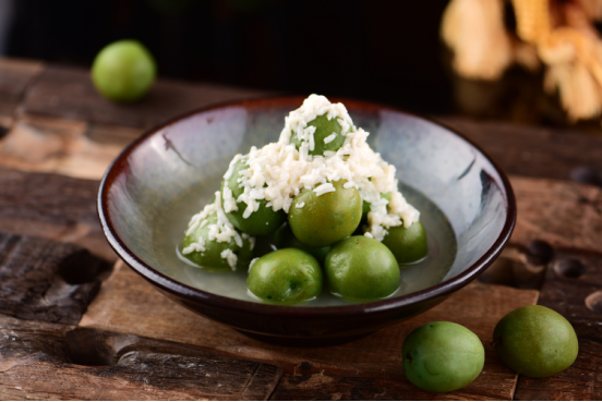 苦瓜又叫涼瓜,滌熱,明目,清心。通過(guò)冰鎮(zhèn)使苦瓜呈青翠瑩亮的半透明狀,青梅腌制的醬,降低了苦瓜的苦度,調(diào)和出酸甜適口、清涼甘苦的滋味。