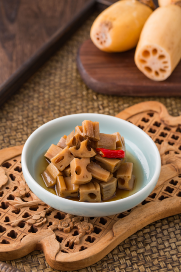 高壓鍋將藕蒸熟,脆軟適中,用醋、糖、醬油、辣椒調(diào)味,咸鮮酸甜,微辣,是一道開(kāi)胃下酒的小菜。