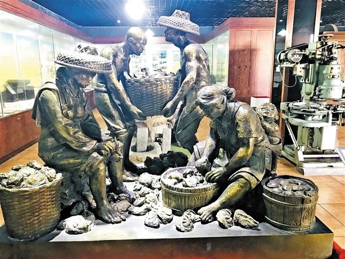 “茫茫大海接藍(lán)天,水下盡是養(yǎng)蠔田。阡陌田疇何界示,叔伯遙指高山巔?!辈┪镳^里這首關(guān)于“打山口”的詩(shī)歌深深吸引了記者。在長(zhǎng)期的發(fā)展過程中,沙井蠔業(yè)逐步形成了打山口、流水定作息、集體協(xié)作等生產(chǎn)習(xí)俗和蠔殼砌墻、上香禮拜天后等生活習(xí)俗,有一整套成熟的養(yǎng)殖和加工技術(shù),形成了種蠔、挒蠔、搬蠔、撒蠔、屯蠔、撲蠔、撿蠔、開蠔等傳統(tǒng)工序。沙井蠔民生產(chǎn)習(xí)俗,世代相傳至今,具有一定的文化價(jià)值和社會(huì)價(jià)值,現(xiàn)已被列入深圳市非物質(zhì)文化遺產(chǎn)名錄。