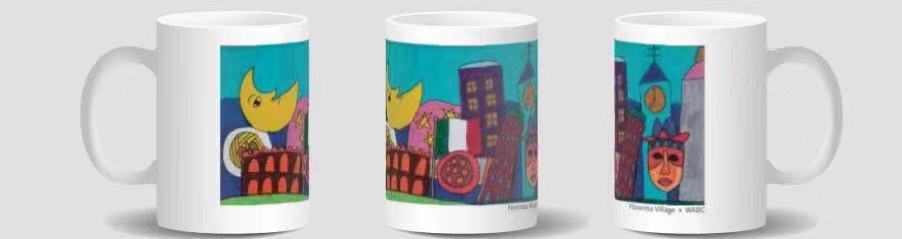 其中,一幅令人過目難忘的作品被制作成了馬克杯和靠墊。這兩樣冬日里不可或缺的日常小物,將以佛羅倫薩小鎮(zhèn)圣誕限量系列的形式開放慈善換購。在2018年12月8日至2019年1月1日期間,在小鎮(zhèn)任意消費,即可以10元換購愛意滿滿的公益抱枕或馬克杯。所有收入所得將全部捐獻給WABC無障礙藝途,幫助更多的特殊孩子感受愛與美好。