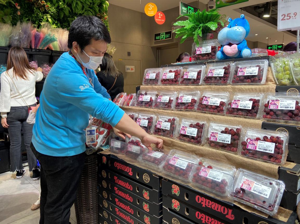 但是,由于地方偏僻、交通不便,加上楊梅本身不耐久貯久壓、難長途運(yùn)輸,石屏楊梅長期以來也是“養(yǎng)在深閨人未識”。為此,盒馬采購李純海早在年前就與云南的早春楊梅種植基地建立聯(lián)系并實(shí)地考察,掌握其生長的第一手信息,一旦成熟即進(jìn)場采摘?!叭ツ晡覀冊趶V東進(jìn)行了試點(diǎn),今年我們提前準(zhǔn)備了耗材輸送到云南產(chǎn)地,基地工人將楊梅采摘預(yù)冷后,直接按照零售終端銷售要求打包?!崩罴兒Uf,每天下午,打包好的早春楊梅被送到昆明長水機(jī)場,當(dāng)晚運(yùn)廣州、深圳、成都,次日就可放上盒馬貨架。不但減少加工環(huán)節(jié),也降低了商品損耗。