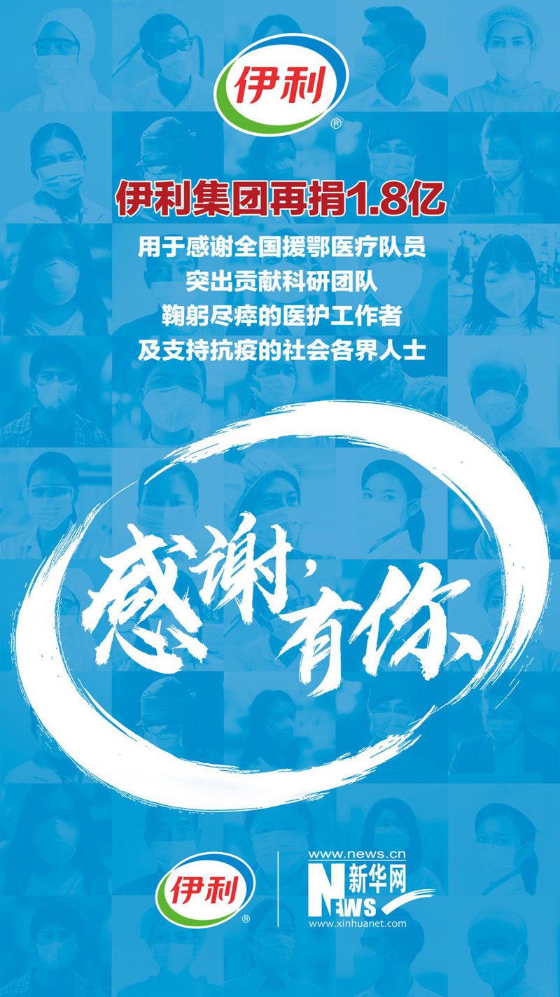 新華網(wǎng)北京3月26日電(胡可璐) 在這場(chǎng)戰(zhàn)“疫”中,無(wú)數(shù)平凡英雄帶給我們最多感動(dòng),他們以“逆行者”的無(wú)畏和擔(dān)當(dāng)筑起疫情防控生命線,守護(hù)著人民,守護(hù)著國(guó)家。3月26日,伊利集團(tuán)再捐1.8億,第一時(shí)間購(gòu)買(mǎi)京東購(gòu)物卡,贈(zèng)送給全國(guó)所有援鄂醫(yī)療隊(duì)員,向他們提供全年?duì)I養(yǎng)支持;向鐘南山院士、李蘭娟院士、程京院士團(tuán)隊(duì)捐贈(zèng)1500萬(wàn)元,感謝科研工作者做出的突出貢獻(xiàn),共同推動(dòng)健康領(lǐng)域的科研攻關(guān);第一時(shí)間購(gòu)買(mǎi)京東購(gòu)物卡,贈(zèng)送給這次抗擊疫情中因公殉職醫(yī)護(hù)工作者的家屬,為他們提供連續(xù)十年的營(yíng)養(yǎng)支持;同時(shí)也向奮戰(zhàn)在抗疫一線的社會(huì)各界人士提供營(yíng)養(yǎng)保障。責(zé)任無(wú)界,大愛(ài)無(wú)疆,伊利累計(jì)捐贈(zèng)額度將達(dá)2.8億,共迎抗疫勝利。