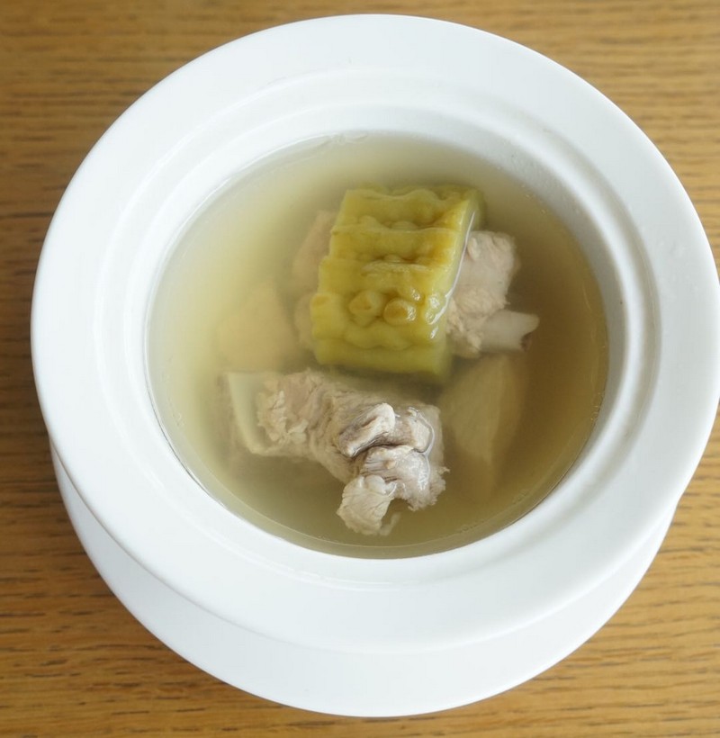 若是清蒸的做法,那么涼瓜的風(fēng)味恐怕是發(fā)揮到高點(diǎn)。有一做法,將涼瓜與河海鮮的“鮮”結(jié)合到一起,同時(shí)讓涼瓜吃出清甜來:古法蒸魚頭。魚頭底下墊著的不是絲瓜,而是更加應(yīng)景的涼瓜。廚師一般用本地的涼瓜,經(jīng)過稍微的糖漬,令澀味滲出,甜味悄然滲入,待到蒸后,涼瓜吃來清、爽、甘、甜。此外,它吸收了魚頭的鮮。順德餐廳的師傅對魚的制作頗為講究,魚頭的汁醬、蒸魚的火候,都盡在他們的拿捏中。這么一來,原本不愿意吃涼瓜的食客,恐怕也要打破多年來的難忍之情,一吃再吃了。