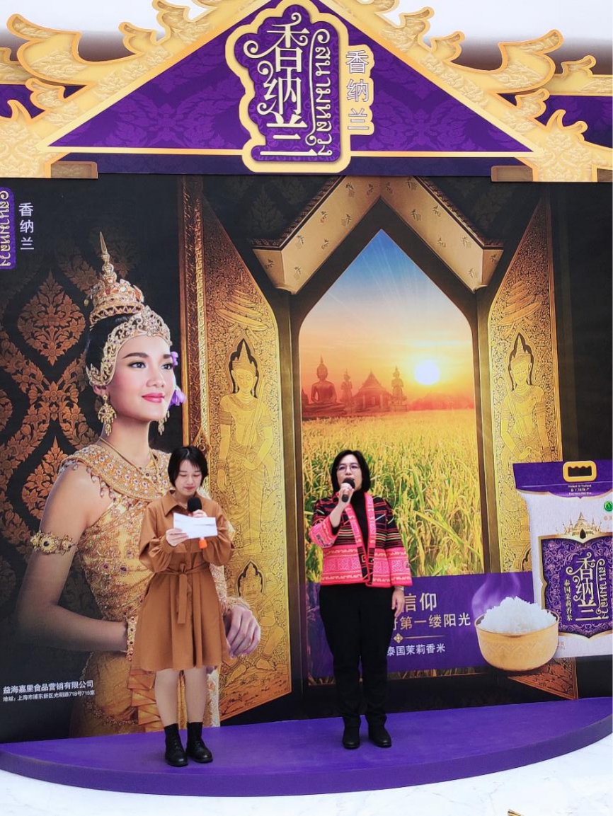 12月7日,香納蘭“泰”好吃樂,陽光之旅/益+秀新米品鑒展示活動在上海金龍魚大廈隆重舉行,益海嘉里集團特邀泰王國駐上??傤I事館農業(yè)處領事吳佩賢女士參加活動并致辭助力香納蘭,本次活動形式豐富多彩,不僅有干貨十足的泰米知識介紹和專業(yè)泰廚現(xiàn)場教學,還有美味的泰米試吃和有趣的互動游戲。與此同時,本次活動將通過線上直播擴大傳播范圍,讓更多消費者了解香納蘭品牌的同時也能感受到獨特的泰國文化魅力。為了讓中國消費者更進一步了解泰國茉莉香米在泰國人民心目中的地位,泰國領事吳佩賢女士在直播間和粉絲做了短暫的分享。
