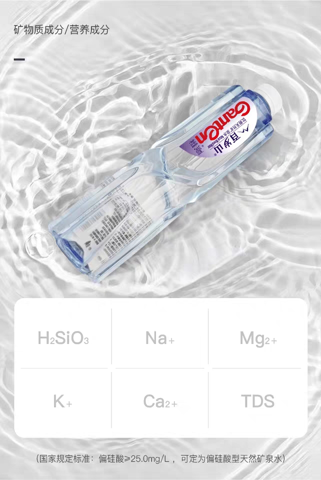 經(jīng)小編了解,百歲山天然礦泉水是采自于地下深層巖石裂隙中,從不使用湖水、河水、水庫水等地表水。而且,百歲山的礦泉水源具有《采礦許可證》,屬于國家液體礦產(chǎn),如同金礦銀礦。一經(jīng)開采可直接飲用,水源天然無污染,還含有高偏硅酸,以及鉀、鈉、鈣、鎂等豐富礦物質(zhì)及微量元素。正因為這樣優(yōu)質(zhì)珍貴的礦泉水源,才成就了水中貴族獨一無二的品質(zhì)。