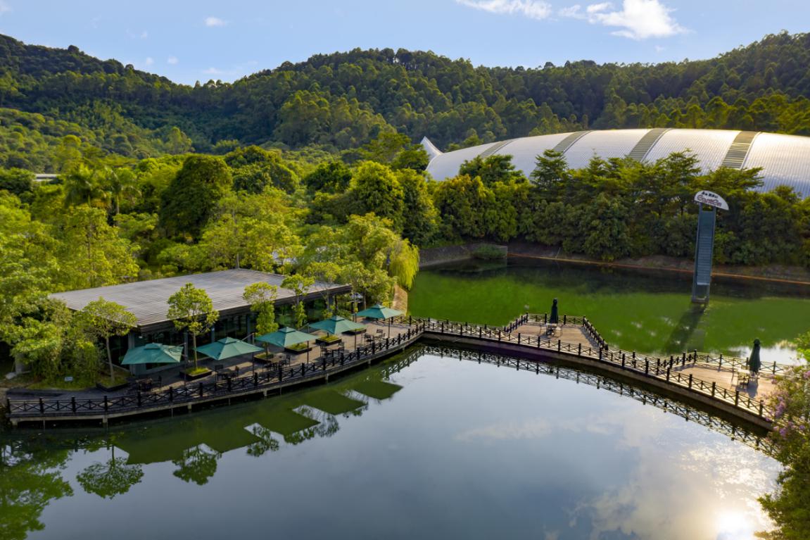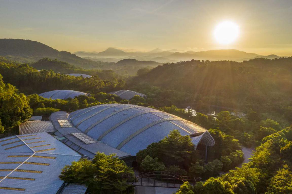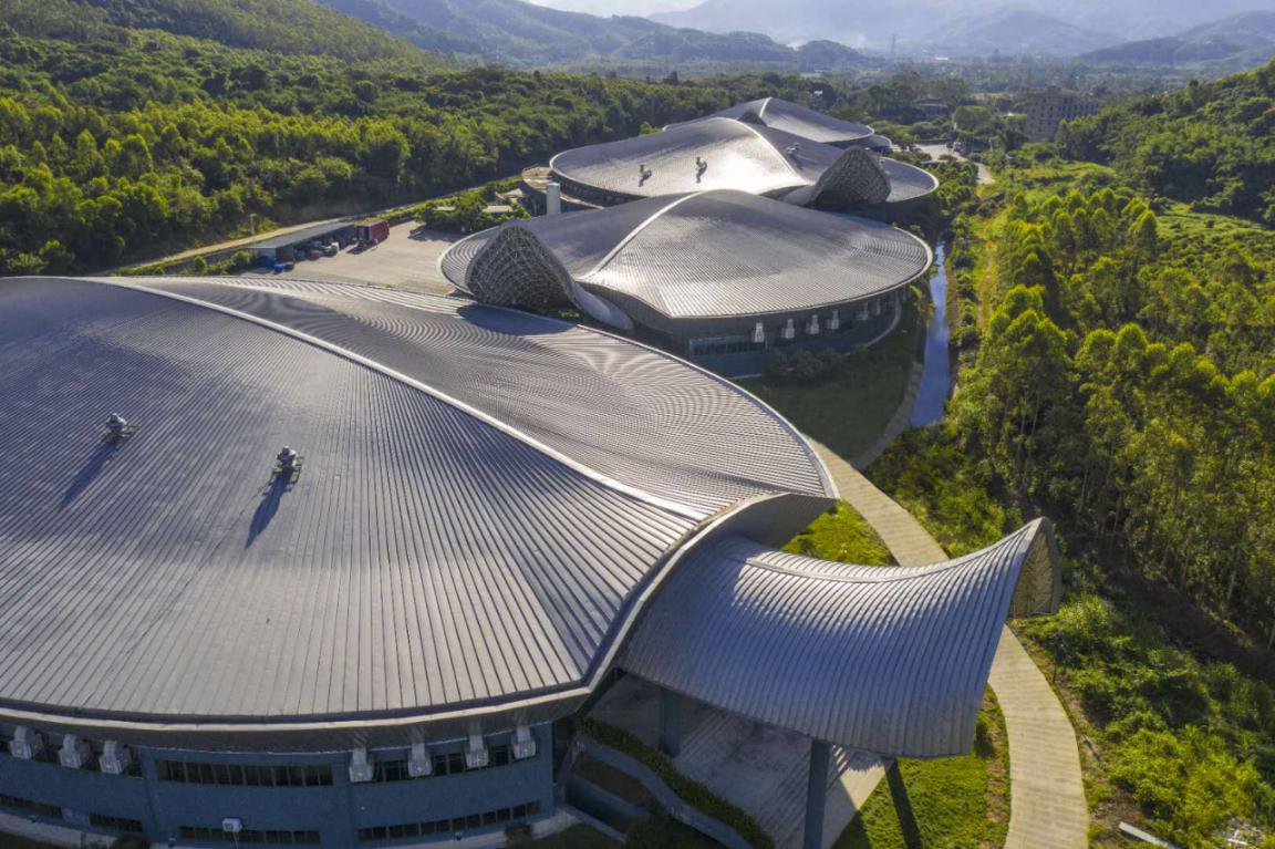 百歲山生產(chǎn)基地坐落在羅浮山脈腳下,整個工廠與周圍的自然生態(tài)融為一體。進入廠區(qū)后,整潔開闊的道路、郁郁蔥蔥的樹木、頗具藝術(shù)感的銀龜型廠房,都讓人不敢相信這里是一個工廠,簡直就是旅游景區(qū),也太美了吧!