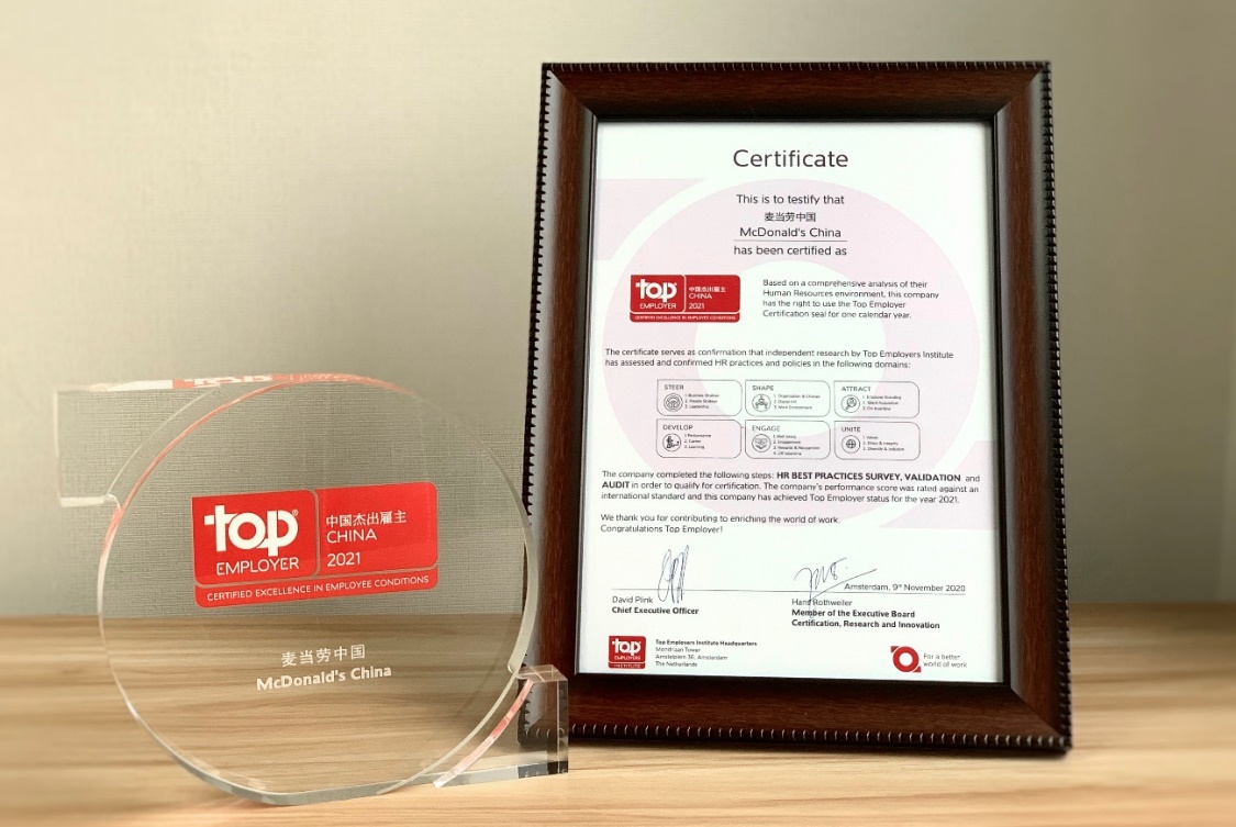麥當(dāng)勞中國(guó)榮獲“中國(guó)杰出雇主2021”認(rèn)證