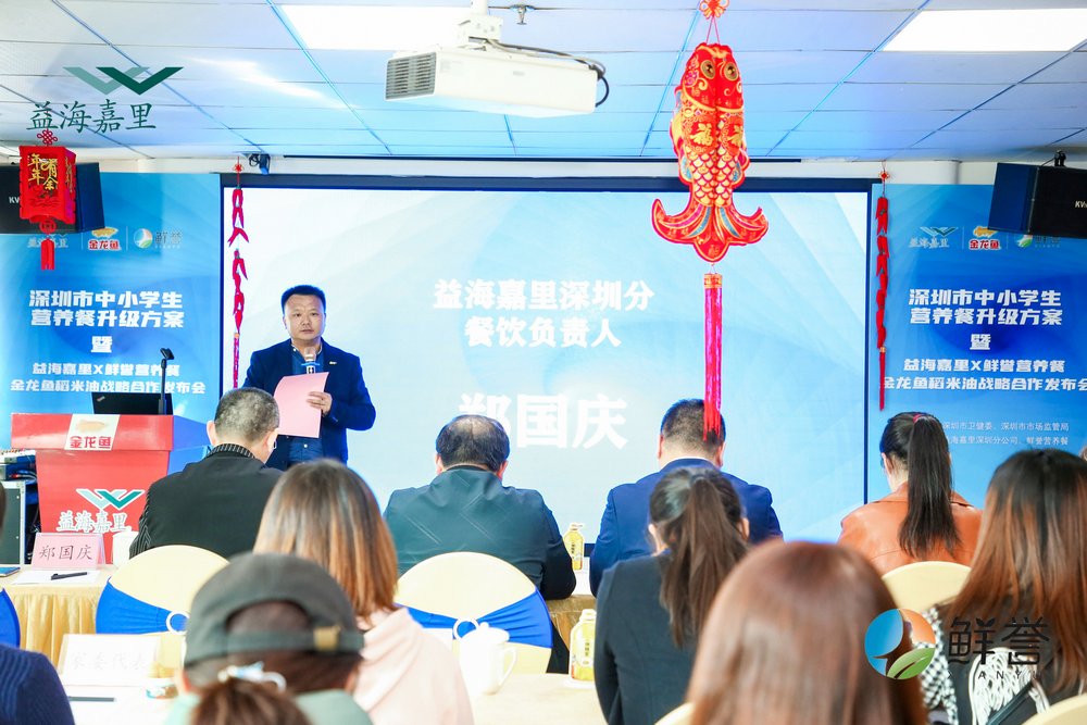 會(huì)議開場(chǎng)由益海嘉里深圳分餐飲負(fù)責(zé)人鄭國慶先生介紹益海嘉里的歷程并對(duì)鮮譽(yù)營養(yǎng)餐出品表示肯定,隨后鮮譽(yù)總經(jīng)理嚴(yán)資旺先生敘述了在營養(yǎng)餐升級(jí)過程中的努力,通過營養(yǎng)師和專業(yè)博士對(duì)營養(yǎng)餐數(shù)據(jù)和內(nèi)容的講述,讓在座的家委代表們更加了解了營養(yǎng)餐升級(jí)的必要性和可行性。益海嘉里稻米油項(xiàng)目的張波先生和朱若維女士以視頻的方式講述了金龍魚稻米油的來源以及榮譽(yù),目前金龍魚稻米油已經(jīng)在日本上市多年并作為中小學(xué)生指定用油長期使用。此外,發(fā)布會(huì)現(xiàn)場(chǎng)還舉行了益海嘉里與鮮譽(yù)戰(zhàn)略合作的授牌及剪彩儀式。