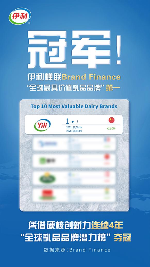 伊利為消費(fèi)者的傾力付出得到了越來越多消費(fèi)者的認(rèn)可,在全球的品牌價值也日益凸顯。在國際權(quán)威品牌價值評估機(jī)構(gòu)Brand Finance發(fā)布的榜單中,公司更是蟬聯(lián)“全球最具價值乳品品牌10強(qiáng)”第一名,并連續(xù)4年在“全球乳品品牌潛力榜”中奪冠。