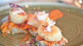 選材對海鮮的烹飪很重要。例如這款香煎帶子,酒店行政總廚Francesco建議選取加拿大新鮮帶子,個頭大,肉質(zhì)鮮嫩多汁,口感更為Q彈。