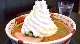 日本神戶市一家餐廳開發(fā)了一款“前所未有的拉面”,以紅豆沙為湯,面上澆一層奶油,集咸、辣、甜味為一體,定于2018年初限量供應。