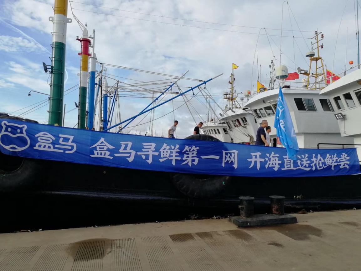 8月2日一早,從東海打撈起的鮮活梭子蟹就已經(jīng)出現(xiàn)在盒馬門店。