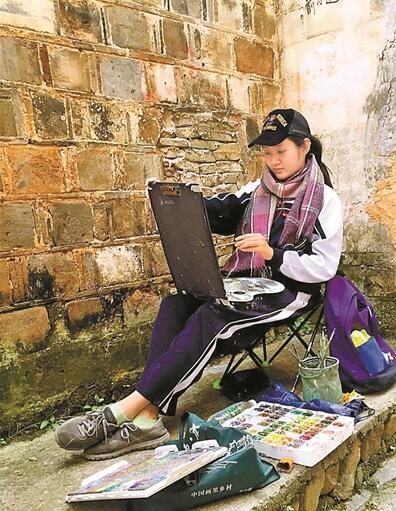 “初中時(shí),我喜歡畫畫,買很多書自己研究但沒(méi)有系統(tǒng)學(xué)過(guò)。聽(tīng)老師說(shuō)喜歡畫畫的同學(xué)可報(bào)考深圳市美術(shù)學(xué)校,我就來(lái)了。”丁心格在老師前很輕松愉快。