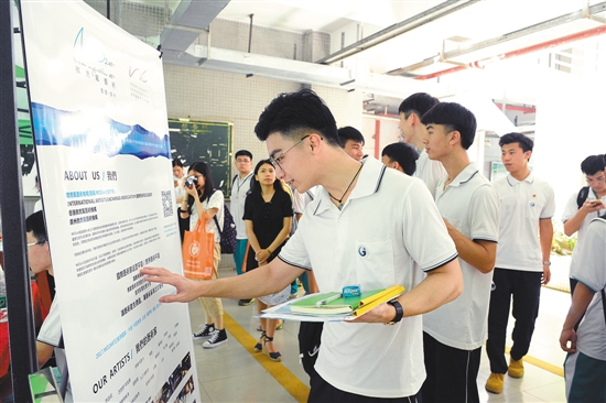 在廣州市機電技師學(xué)院招聘會現(xiàn)場,記者發(fā)現(xiàn),熱門企業(yè)攤位前早已大排長龍。