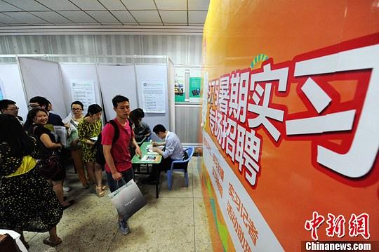 資料圖片:長(zhǎng)沙舉辦暑期實(shí)習(xí)生專場(chǎng)招聘 來源:中新社