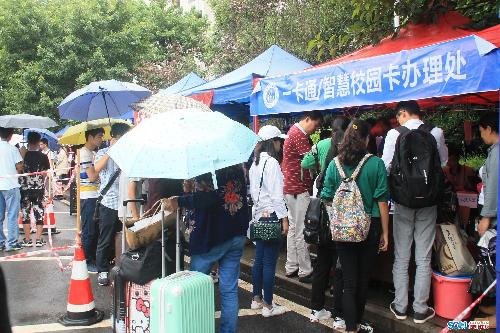 記者隨后跟訪了一名新生報(bào)到入學(xué)的流程。8時(shí)30分,新生小楊在學(xué)門口被學(xué)生志愿者帶到所在院系報(bào)到。報(bào)到有兩種方式,可選擇現(xiàn)場(chǎng)報(bào)到,也可選擇網(wǎng)絡(luò)報(bào)到,小楊選擇的網(wǎng)絡(luò)報(bào)到。
