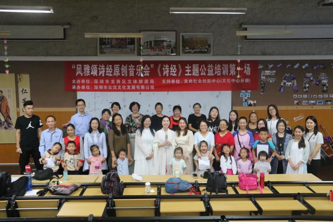 深圳新聞網訊2018年10月14日,龍崗區(qū)文體旅游局、龍崗社會創(chuàng)新中心(文化中心分部)攜手深圳市云漢文化發(fā)展有限公司,在深圳信息學院風雅頌詩經原創(chuàng)傳承基地排練室共同啟動針對龍崗區(qū)外來務工人員家庭的《詩經》主題公益課。來自龍崗區(qū)各個社區(qū)的15組家庭、共32人參加了本次培訓課程,老青少三代同堂,唱詩學禮,齊聲共鳴。
