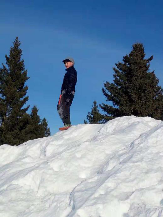 在學(xué)校,一望無際的操場上,雪丘一個(gè)比一個(gè)高,當(dāng)你站在雪丘的至高點(diǎn),笨重的校巴就不再是那么大了。喜歡雪的同學(xué)們一點(diǎn)也不怕冷。他們在雪地里打球、摔跤、滑雪,還不時(shí)地會(huì)聽到尖叫聲,原來是同學(xué)相互在雪丘上推上推下,開心得不亦樂乎。