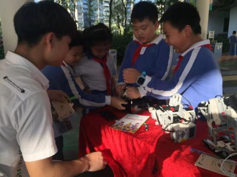 在活動(dòng)現(xiàn)場(chǎng),不少智能科技迷正被愛(ài)匯百變教育科技有限公司的EV3編程機(jī)器人高爾夫、EV3編程機(jī)器人幸運(yùn)大轉(zhuǎn)盤(pán)、EV3編程機(jī)器人障礙大闖關(guān)、電磁感應(yīng)千人震等系列體驗(yàn)活動(dòng),通過(guò)親身體驗(yàn),同學(xué)們收獲了LEGO仿真機(jī)械結(jié)構(gòu)及圖形化編程、電動(dòng)發(fā)電、電磁感應(yīng)、電路等科普知識(shí)。