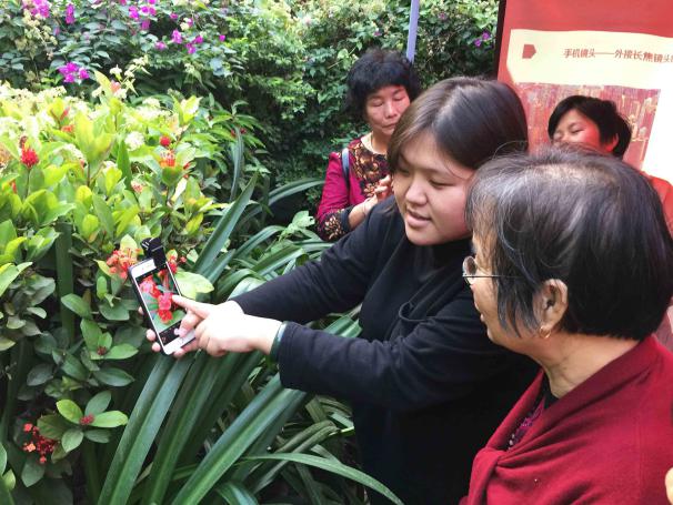 市民們在講解員指導下練習手機攝影