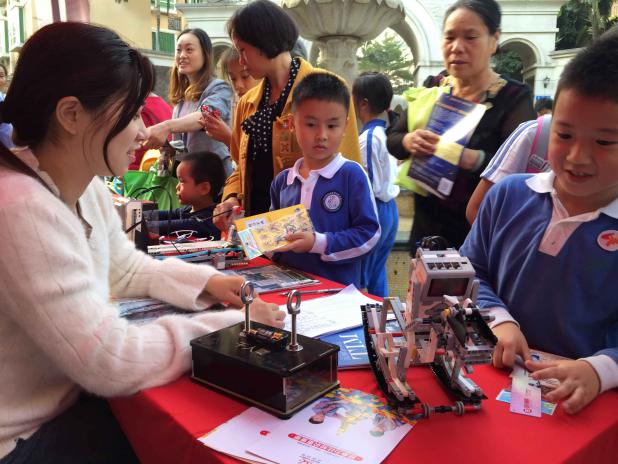 市民們在體驗EV3編程機器人與電磁感應千人震項目