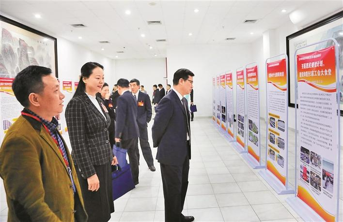 ▲福田區(qū)人大代表觀看展板,了解民生實事辦理情況。