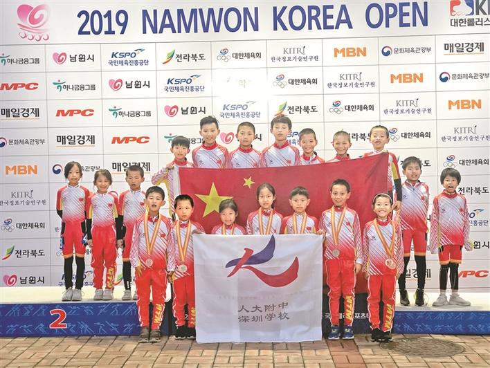 晶報(bào)05月16日訊 近日,韓國南原國際輪滑公開賽順利舉行,吸引了來自全球16個國家和地區(qū)的1000多名優(yōu)秀運(yùn)動員參賽。晶報(bào)記者從人大附中深圳學(xué)校獲悉,該校小學(xué)輪滑隊(duì)的11名選手首次代表中國MX青少年隊(duì)參加了本次國際輪滑公開賽的小學(xué)(1&2年級)的項(xiàng)目比賽,經(jīng)過激烈角逐,喜獲2金4銀13銅。值得一提的是,這是剛成立一年的人大附中深圳學(xué)校輪滑隊(duì)隊(duì)員們在國際舞臺上的首次亮相。學(xué)校以愛與尊重為核心理念,注重學(xué)生的全面發(fā)展,并注重突出發(fā)展學(xué)生特長,充分挖掘?qū)W生潛力,開設(shè)了豐富多元的課程,其中,開設(shè)了輪滑課等必修課,以及舞蹈、國際象棋等特色課程。