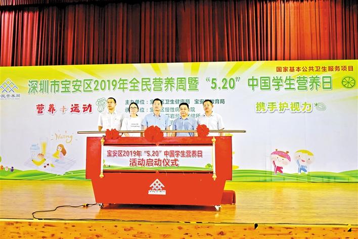 寶安日?qǐng)?bào)5月21日訊 你每天運(yùn)動(dòng)夠60分鐘了嗎?每天都有吃蔬菜水果嗎?如今,已有越來越多的人重視營養(yǎng)、運(yùn)動(dòng)與人體健康的關(guān)系,每年的5月20日是中國學(xué)生營養(yǎng)日,今年的主題是“營養(yǎng)+運(yùn)動(dòng),攜手護(hù)視力”。5月20日下午,寶安區(qū)2019年全民營養(yǎng)周暨“5·20”中國學(xué)生營養(yǎng)日在石巖湖學(xué)校舉行。