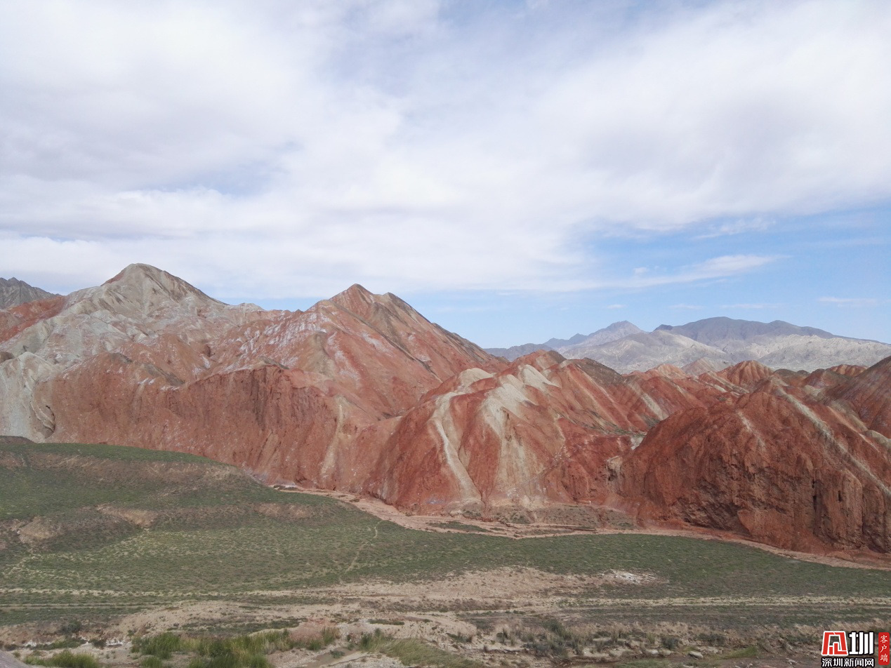 丹霞地貌和雅丹地貌這兩個(gè)這么“地理學(xué)術(shù)”的名詞,讓我倒吸了一口冷氣,雖是高考選地理的人,但自然地理的各種成因和分布著實(shí)讓我抓狂。簡(jiǎn)單來說,丹霞地貌是由流水侵蝕而成的,而雅丹地貌則是典型的風(fēng)蝕性地貌。從外觀上來看,丹霞是廣袤大地上狂奔的色彩。古有“色若渥丹,燦如明霞”,精確地點(diǎn)明了彩丘在明媚日光下的絢爛赤紅、杏黃等奇異明亮的色彩。待到陽光爬上山頭,蔚藍(lán)漸漸暈開,才能看到“紅色混雜著灰、白、綠、橙、黃等多種顏色,如同一條彩帶溶解在了起伏不定的地面上”。這時(shí)的張掖名副其實(shí)的七彩丹霞才會(huì)有宣傳照上的光彩奪目。