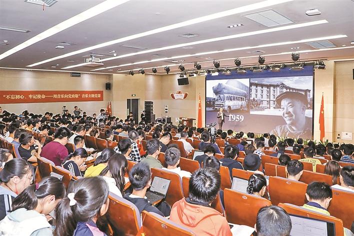 主題黨課上,劉洋用音樂串起了一條波瀾壯闊的時(shí)代線索,激發(fā)師生愛國(guó)情懷和使命感、責(zé)任感。